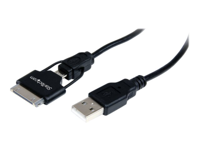 StarTech.com Câble connecteur Apple Dock 30 broches ou Micro USB vers USB 60 cm - Cordon de charge / sync pour iPad iPhone iPod - Blanc - Câble de chargement / de données - USB mâle pour Apple Dock, Micro-USB de type B mâle - 65 cm - noir