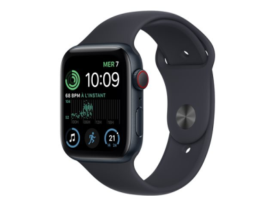 Apple Watch SE (GPS + Cellular) - 2e génération - 44 mm - aluminium minuit - montre intelligente avec bande sport - fluoroélastomère - minuit - taille du bracelet : Normal - 32 Go - Wi-Fi, LTE, Bluetooth - 4G - 32.9 g MNPY3NF/A