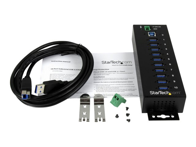 StarTech.com Hub USB 3.0 - 10 ports - Industriel Concentrateur USB - Avec protection contre surtensions/DES - Métal - Rail DIN - Alimenté - Concentrateur (hub) - 10 x SuperSpeed USB 3.0 - Montage sur rail DIN - Tension CC - pour P/N: ITB20D3250, USB312SAT3CB, USB315CB2M, USBLT1MWS, USBLT2MBR, USBLTM1MBK, USBLTM1MWH
