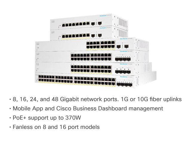 Le Cisco Business CBS220-24FP-4X est un commutateur intelligent simple et abordable pour les réseaux d'entreprises. Les produits de la gamme CBS220 sont proposés au même prix que des périphériques non administrables, tout en offrant la simplicité d'utilisation de commutateurs intelligents. Grâce à leur tableau de bord intuitif, à la prise en charge de l'application mobile et aux multiples options PoE, ces commutateurs vous assurent un réseau solide.